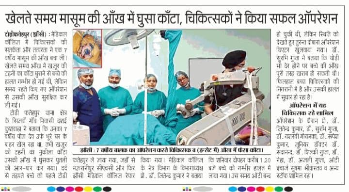 खेलते समय मासूम की आँख में घुसा काँटा चिकित्सकों ने किया सफल ऑपरेशन