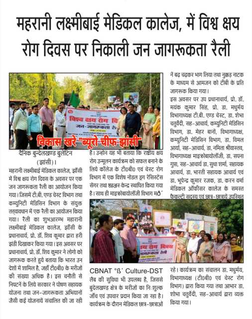महरानी लक्ष्मीबाई मेडिकल कालेज, में विश्व क्षय रोग दिवस पर निकाली जन जागरूकता रैली