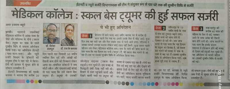 मेडिकल कॉलेज : स्कल बेस ट्यूमर की हुई सफल सर्जरी