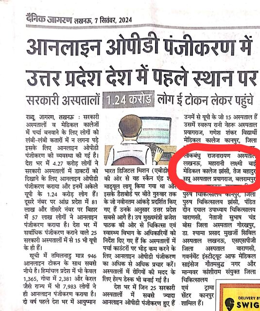आनलाइन ओपीडी पंजीकरण में उत्तर प्रदेश देश में पहले स्थान पर