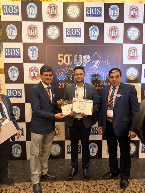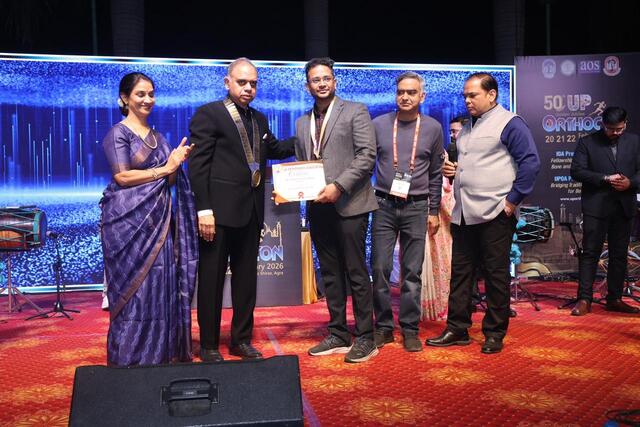 Dr. Nikhil Jain Asst professor orthopaedic, awarded Prestigious Dr. A K Gupta Gold Medal for his research work on Scaphoid fractures in UPOrthocon held at Agra.