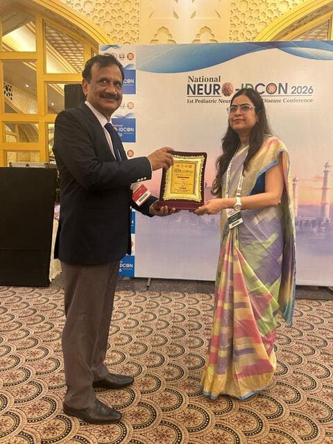 Dr. Sapna Gupta associate professor invited pediatrics As a Speaker in National Neuro-infectious disease conference held on 28 Th February ,topic of “Advance diagnosis NGS “. And a panelist in “pediatric Neuroinfection case based “ moderated by Dr Yewale . Pediatric Residents Dr. Vijaykeerti and Dr. Gaurav have recieved first and third prize respectively in poster presentation at 1st National Pediatric Neuro infectious conference (NEURO IDCON) held in Agra on 28 Feb 2026
